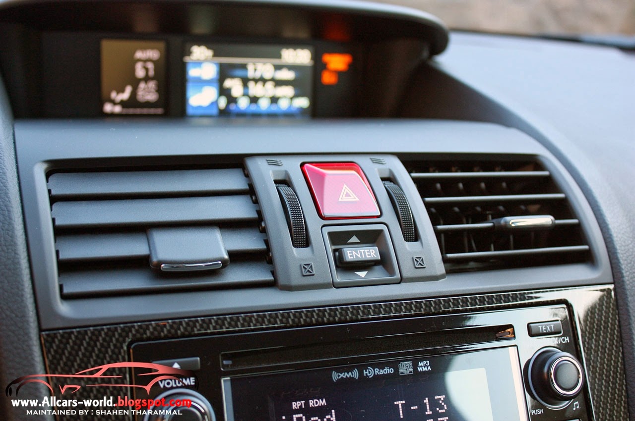 Decorative carbon trim panels and metal trim accents have been arranged around the interior, centered on the controlling elements. This gives the interior a quality feel and harkens back to the Subaru WRX racing image.